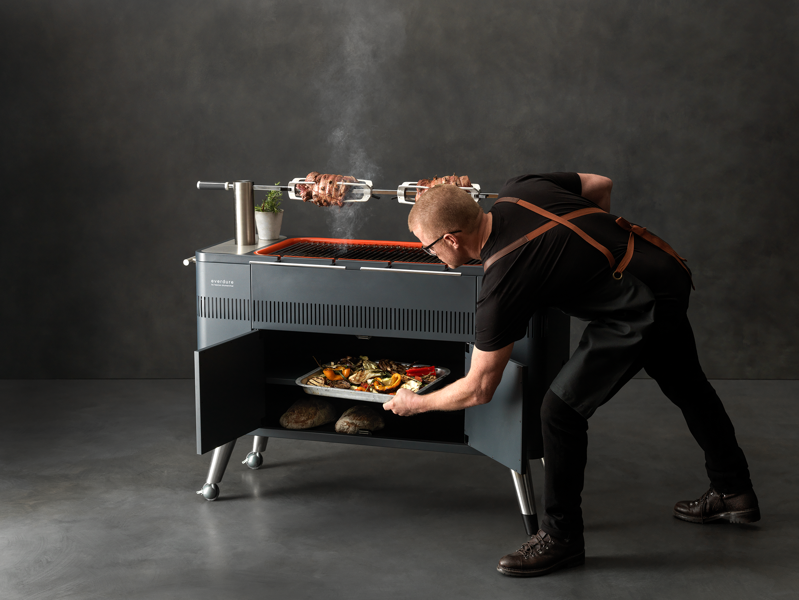 Produktinformationen "Everdure HUB II Holzkohlegrill inkl. Abdeckhaube, Warmhalterost und Trommel"