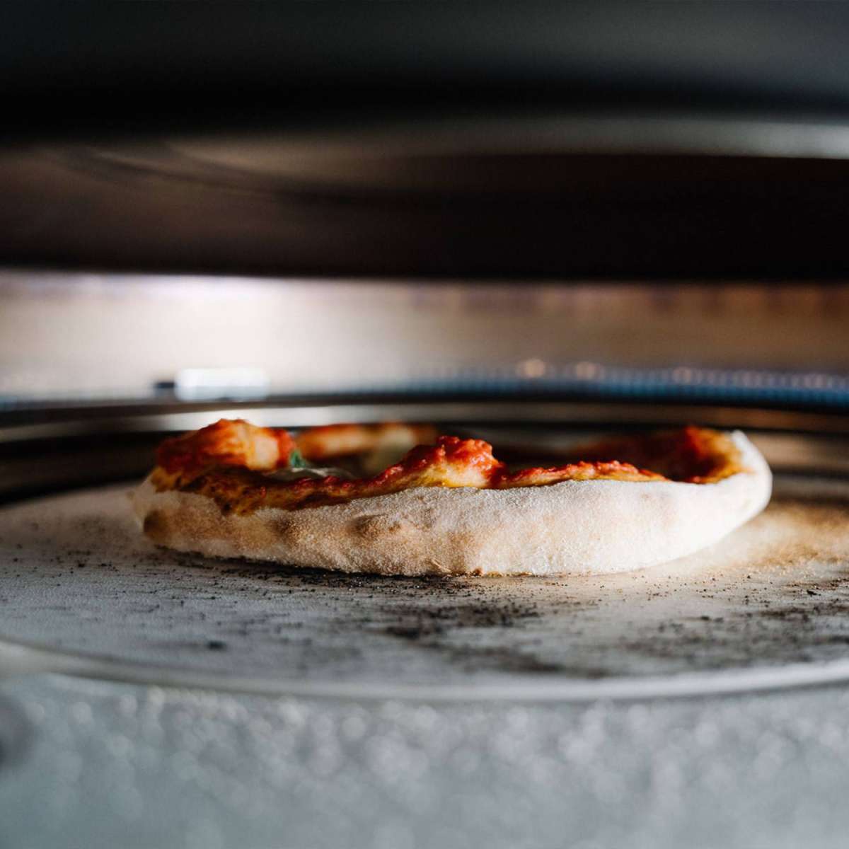 Dank der einfachen Gaszündung ist der everdure Kiln in nur 15 - 20 Minuten bis auf 500°C aufgeheizt. Die Kombination aus dem U-förmigen Hauptbrenner und dem Booster Brenner unter dem Stein lässt Dich auch direkt nacheinander viele neapolitansche Pizzen backen.