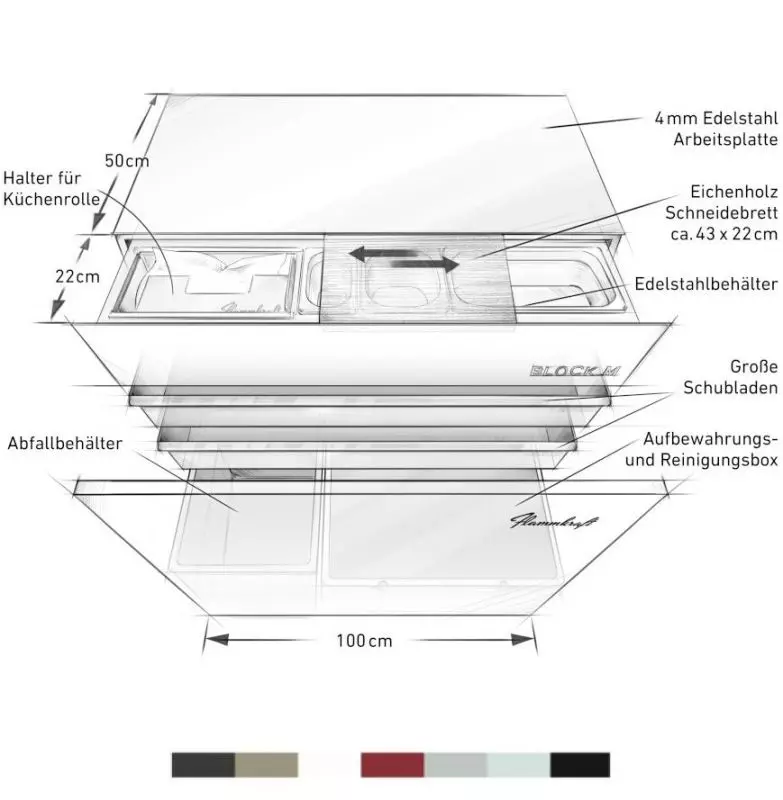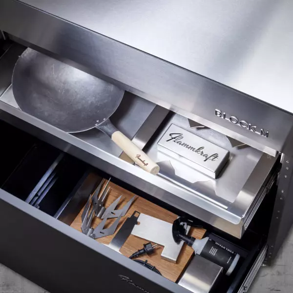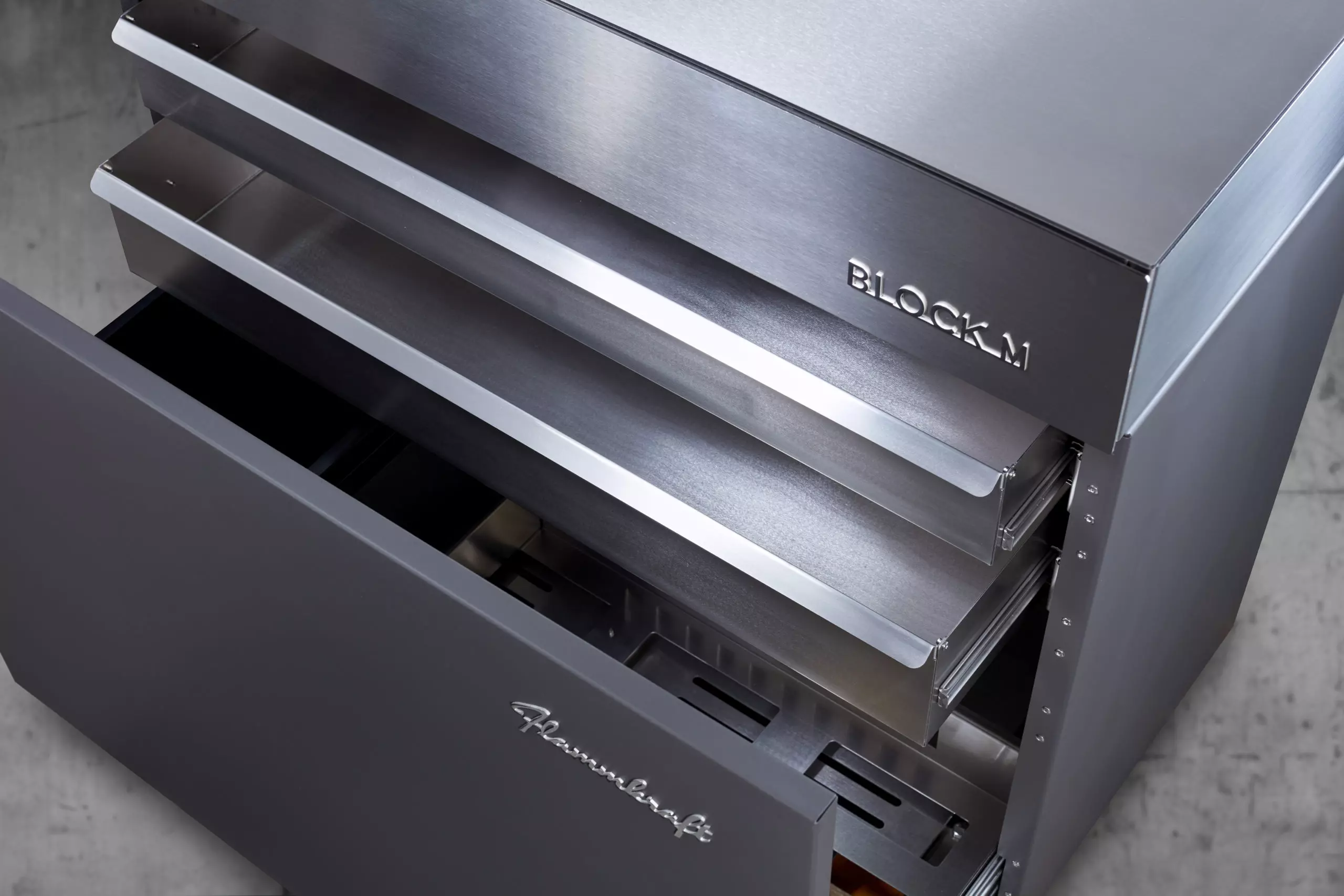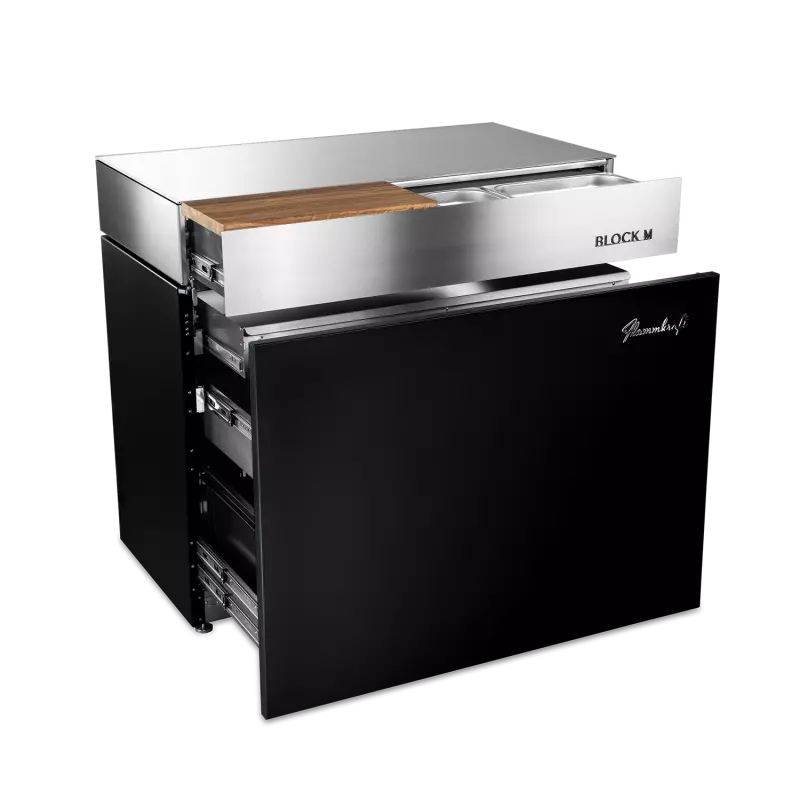 Ob als hochwertiges Outdoor Küchenmodul oder als Ergänzung zum neuen Block D, der Block M ist perfekt ausgestattet für die Vorbereitung und das Bereitstellen von Zutaten während des Grillens.