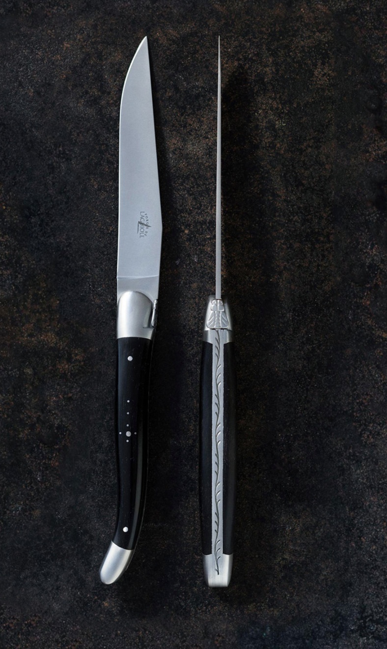 Forge de Laguiole Steakbesteck 4 teiliges Set - schwarzes Horn