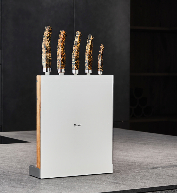 Nesmuk Janus Messerset - Kochmesser, Slicer und Office Karelische Maserbirke