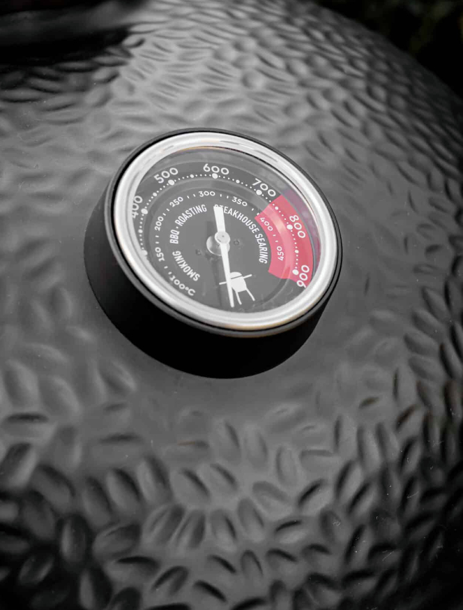 Wie bei allen anderen Monolith-Modellen verfügt auch der Avantgarde Classic über ein innovatives Abluftventil aus robustem Gusseisen und einen fest eingebauten BBQ Guru Adapter, der eine einfache Integration des BBQ Guru Lüftungssystems ermöglicht.
