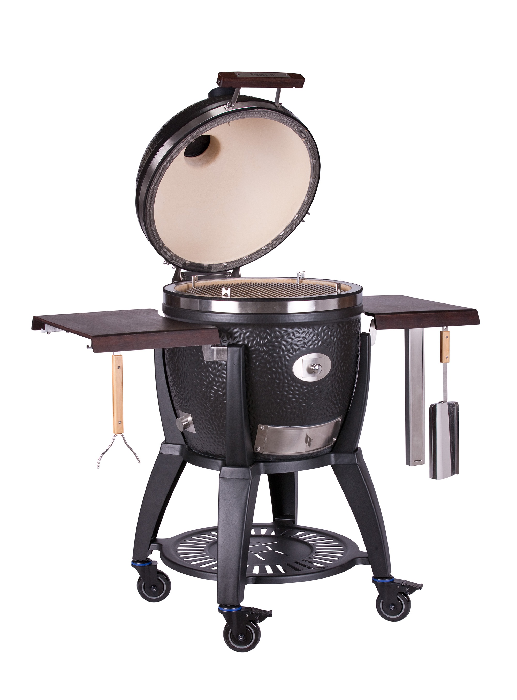 Die hochwertige Silikatkeramik, mattgebürstete Edelstahlelemente, die Glasfaserdichtung und nicht zuletzt das integrierte LED Licht im Griff zeichnen diesen aussergwöhnlichen Kamado aus.