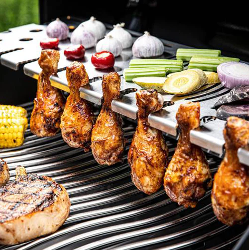 Einige Elemente wurden gut durchdacht und helfen dabei noch mehr Freude am Grillen zu haben. Die Flammenschutzeinsätze schützen die Brenner und sorgen gleichzeitig für eine noch bessere Verteilung der Hitze. Die Porzellanbeschichtung erleichtert die Reinigung und schützt vor Rost. Der Deckel wird durch die Grafit-Porzellan-Beschichtung vor Abnutzung, Wettereinflüssen und Fingerabdrücken geschützt. Das geschlossene Design schütz den Wagen vor Umwelteinflüssen und erlaubt einen sicheres Betrieb des Propantanks.