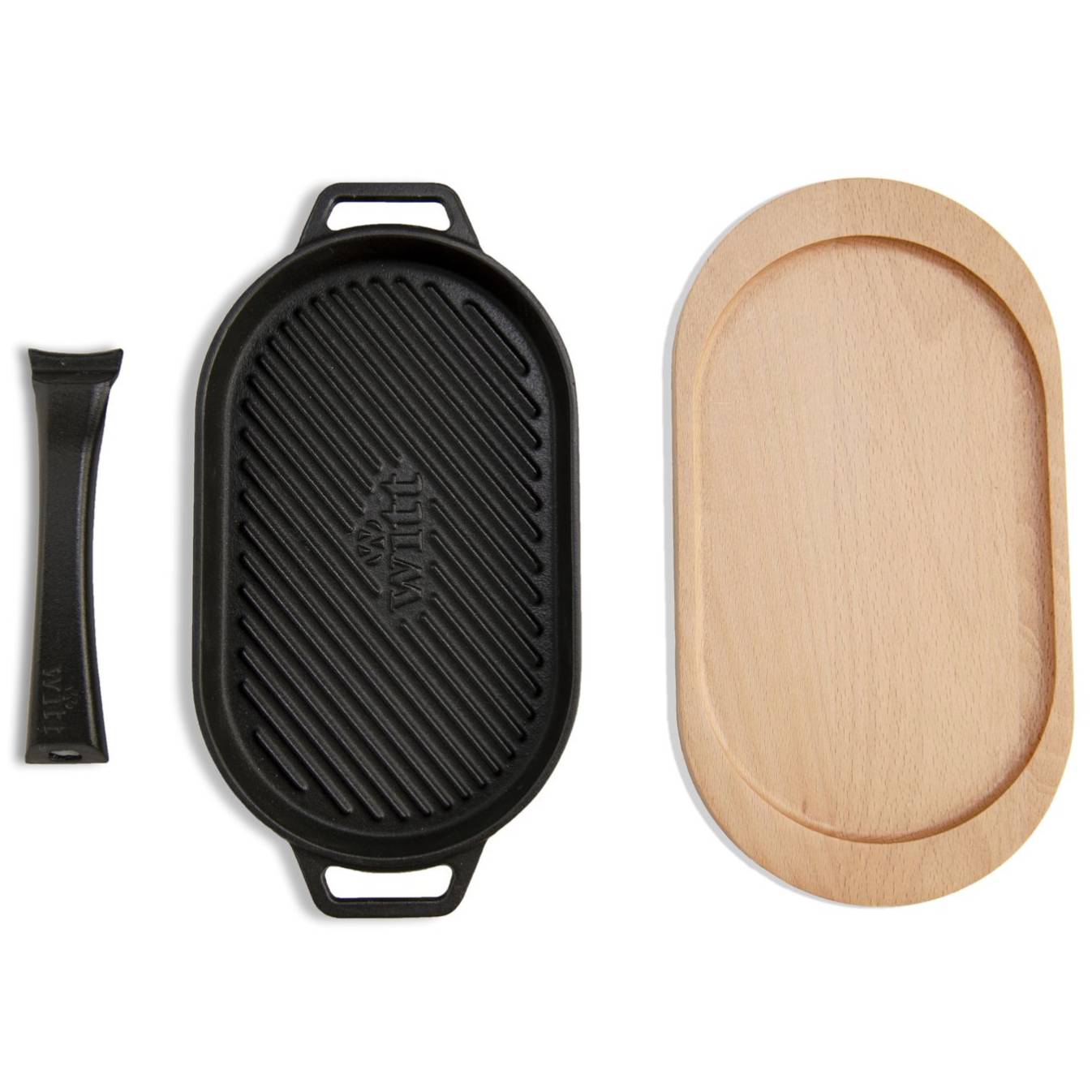 Witt Grillpfanne aus Gusseisen inkl. Holzbrett - mit Rillen